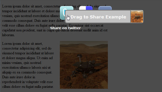 我們都看到了輝煌混搭新聞故事和有趣的文章,可以共享社交網站的功能;隨行物品的圖像驅動功能,你點擊並按住圖像,然後拖動到工具欄分享。它的輝煌和直觀的,在這篇文章中,我要告訴你,我們如何能夠復制這種行為與jQuery和jQuery UI。