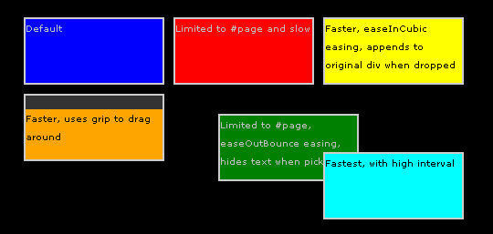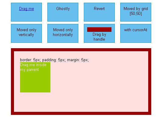 ppDrag是一個jQuery拖放插件,它模仿了jQuery UI的可拖動的界面。目前支持的是其選擇的一小部分,但實施是不同的(ppDrag集中表現)。