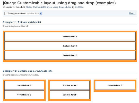 jQuery的:定制的布局,使用拖放(例子)