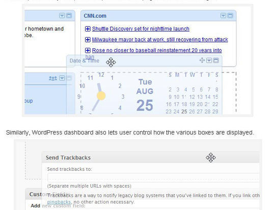 拖動列印掉落面板是偉大的,讓用戶控制他/她希望看到的信息,他可以根據自己的喜好來安排各種信息塊。這種類型的功能往往通過門戶網站或類似的iGoogle個人主頁服務的提供。