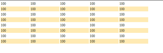 <tr><td> 100 </td> <td> 100 </td><td> 100 </td><td> 100 </td><td> 100 </td></tr>