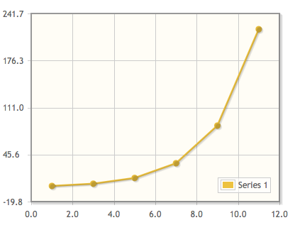 $.jqplot('chartdiv', [[[1, 2],[3,5.12],[5,13.1],[7,33.6],[9,85.9],[11,219.9]]]);