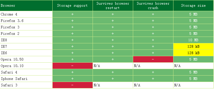 下面是一張各個浏覽器本地存儲容量的參考圖(來自jStorage的主頁):