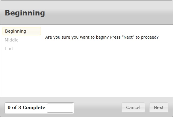 <p>Are you sure you want to begin? Press "Next" to proceed?</p>
