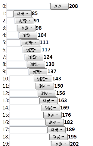 發現了一定的規律,默認為208像素,size="1"時為85像素,每個size之間相差6.5個像素的寬度,所以我們可以動態的設定size的值,如: