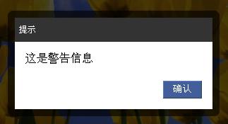 Boxy.alert(message, callback, options)方法的3個參數message表示警告信息;callback為回調方法;options是boxy彈出框的的屬性對象,見4.1。