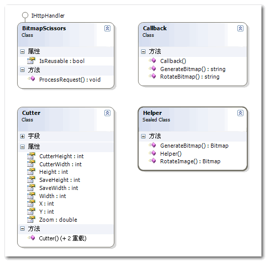 其中BitmapCutter.Core是圖片的服務器端處理程序, 類圖為: