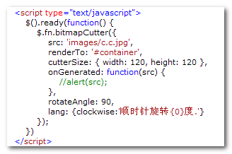 onGenerated(Function): 成功生成頭像時觸發事件數, bitmapCutter向此方法傳遞一個參數 'src', 表示新裁剪生成的頭像路徑. 此屬性的默認值為 function(src) { },