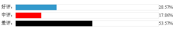$("#z").study_vote([{"options":"好評","data":"16","color":"#39c"},{"name":"中評","data":"10","color":"#f00"},{"name":"差評","data":"30","color":"#000"}]);