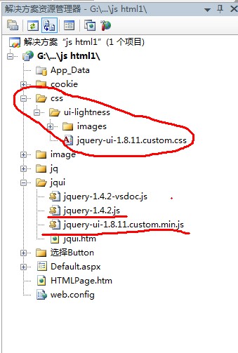 不怎麼好看對吧...不要緊張,這時候我們把jquery-ui-1.8.11.custom文件夾裡的css文件夾復制進來,看圖吧。。。