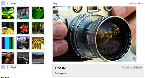 Galleriffic 是使用 Mike Alsup 的 jQuery Cycle plugin 創建的圖片展示效果,包括縮略圖、圖片標題和描述等詳細功能,是一個非常不錯的高質量畫廊相冊展示工具。