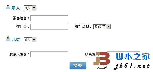 當下拉框改變的時候,添加一個成人填寫信息或兒童填寫信息!