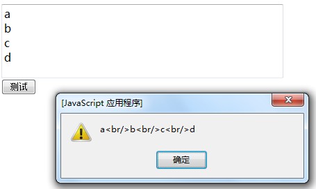 網上眾說紛纭,經過測試用 textarea的內容.replace(/\n/g, "<br/>") 解決問題,在IE6/7/8/9 Firefox/3.6.13 chrome10.0.648.82下測試通過,示例代碼如下: