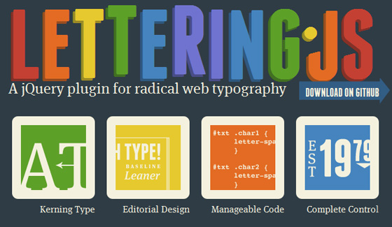 Lettering.js是一個輕量經的、易於使用的jQuery插件,可創造出極具個性的網頁排版,是2010年最佳jQuery插件之一。
