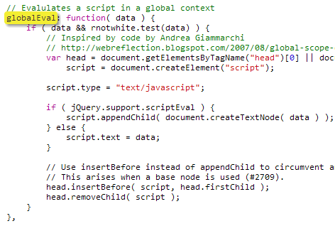 jQuery.globalEval( elem.text || elem.textContent || elem.innerHTML || "" );