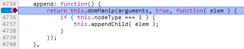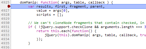 由此可見,對於內聯的script標簽,jQuery通過在head中創建script標簽來執行。