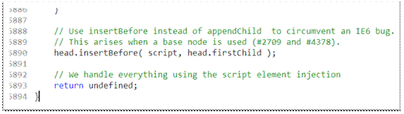 經過分析,我們發現在動態加載不同域的JavaScript時,jQuery.html其實采用了在head中添加script標簽的做法(不管是外部JS或者內聯JS),這和我們在第一篇文章中提到的test3.htm是一模一樣的邏輯,這也驗證了我們的想法: