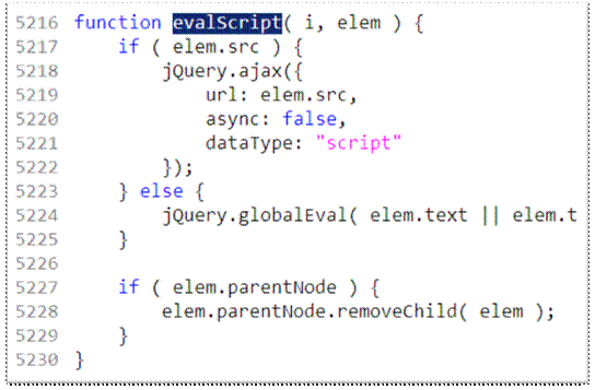看來我們在第二篇文章中看到的這個函數(evalScript)內部並非真的通過同步AJAX來獲取數據:
