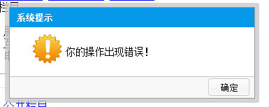 <div class="alertParent"><BR><div class="alertContent"><BR><h2 class="title">系統提示</h2><BR><div class="alertHtml"><BR>你的操作出現錯誤!<BR></div><BR> <div class="btnBar"><BR> <input