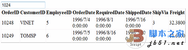 SelectCommand="SELECT top 50 * FROM [Orders]"></asp:SqlDataSource>
