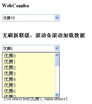 而滾動條滾動加載數據則由下拉DIV的onscroll事件完成,具體核心代碼如下: