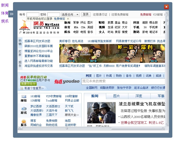 聲明:我做的只是實現這個效果,在美觀上並沒有做到yahoo主頁這麼好看,所以不要介意!