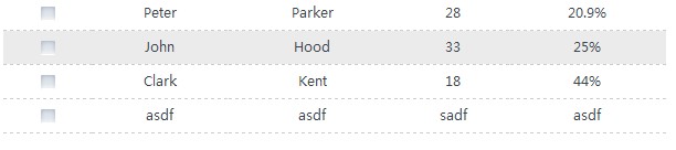 var str='<tr><td><input type="checkbox" name="checkbox"/><td>'+'<td>'+fval+'</td>'+'<td>'+lval+'</td>'+'<td>'+age+'</td>'+'<td>'+percent+'</td></tr>';