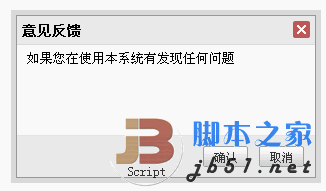 jBox.open('jBoxID2', 'inline', '<p>如果您在使用本系統有發現任何問題<p>', '意見反饋', 'width=300,height=60,center=true,draggable=true,model=true');
