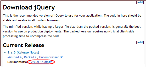 3) 下載jQuery原文件及-vsdoc.js文件,並通過相同的文件名前綴進行關聯。