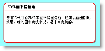 使用IE專用的VML來畫平滑圓角框,還可以畫出陰影效果。就其圖形表現來說,是非常完美的。