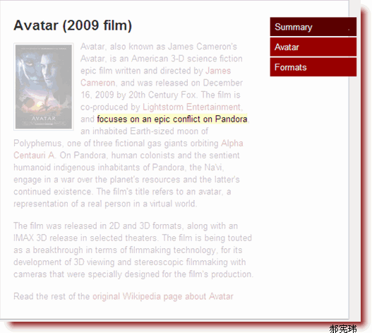 鼠標放到右邊的Tab按鈕上,文字透明度降低,同時一段文字高亮顯示,效果如下: