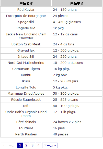 接著在頁面的body裡面寫入如下的代碼,在這裡強調一下呈現出來的數據是沒有進行控件綁定的,完全是由簡單的table來呈現數據的,先看一下頁面代碼