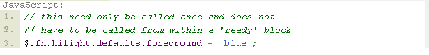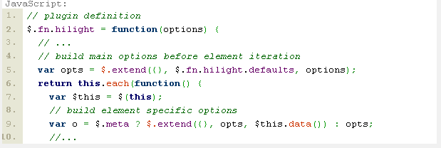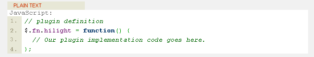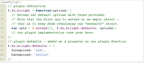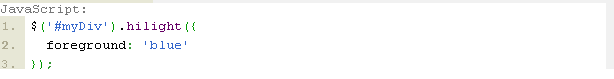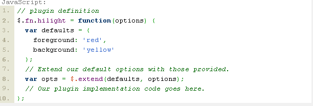 讓我們先為我們的hilight插件明確一下foreground和background的顏色。我們應該能夠允許這兩個option作為option對象傳遞給plugin的主函數。例如: