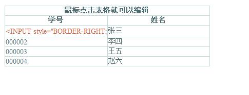 繪制好表格以後,我們選取表格中的編號列作為可編輯的列。要讓這一列的單元格能夠被編輯,就需要在這些列中插入文本框,我們通過這一列單元格的onclick事件來插入文本框。