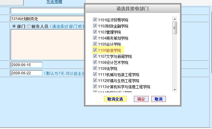 3 .在前段代碼的input 輸入框(或asp:TextBox )的onfocus 屬性中調用如下腳本: jMulticheckbox('' , '<% = allcheckinfo.ToString() %> ' , '請選擇接收部門' , function (r) {
