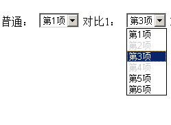 <!DOCTYPE html PUBLIC "-//W3C//DTD XHTML 1.0 Transitional//EN" "http://www.w3.org/TR/xhtml1/DTD/xhtml1-transitional.dtd"> <html xmlns="http://www.w3.org/1999/xhtml"> <head> <title> 使用jQuery解決IE不支持的option disable屬性 </title> <meta http-equiv="Content-Type" content="text/html; charset=gb2312" /> <script src="http://jqueryjs.googlecode.com/files/jquery-1.3.2.min.js" type="text/javascript"></script> <script> $(document).ready(function(){ $(".myselect option:disabled").css('color', '#CCC'); $('.myselect').change(function(){ if(this[this.selectedIndex].disabled){ this.selectedIndex = this.s||0; }else{ this.s = this.selectedIndex||0; } }) }) </script> </head> <body> <h1>使用jQuery解決IE不支持的option disable屬性</h1> 普通: <select> <option>第1項</option> <option disabled="disabled">第2項</option> <option>第3項</option> <option disabled="disabled">第4項</option> <option >第5項</option> <option >第6項</option> </select> 對比1: <select class="myselect"> <option>第1項</option> <option disabled="disabled">第2項</option> <option>第3項</option> <option disabled="disabled">第4項</option> <option >第5項</option> <option >第6項</option> </select> 對比2: <select class="myselect"> <option>第1項</option> <option disabled="disabled">第2項</option> <option>第3項</option> <option disabled="disabled">第4項</option> <option >第5項</option> <option >第6項</option> </select> <p style="margin-top:200px;font-size:12px;">Dev By CssRain,當然你有興趣,也可以封裝成插件。記得發我一份哦。</p> </body> </html>