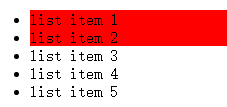 $('li').slice(0,2).css('background-color', 'red'); 索引從1開始,直到索引為2結束不包括2