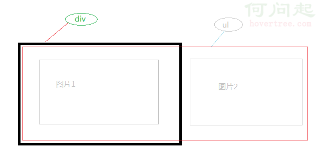 原理:如圖,試想一下,若是將<ul>的width屬性值設置的很寬,直到可以裝下你所有的圖片,而每一個圖片又用<li>包著並且設置了左浮動。
