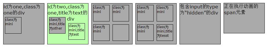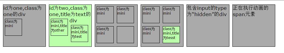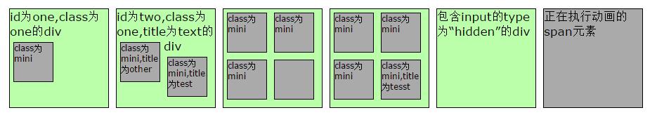 $("div:has('.mini')").css("background-color","#bbffaa"); //改變含有class為mini元素的<div>元素的背景色