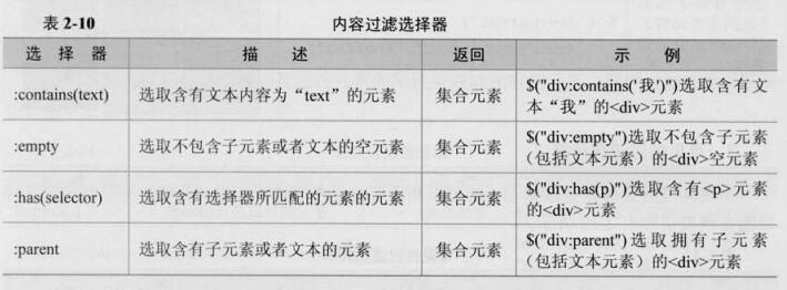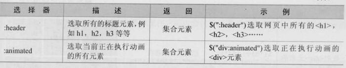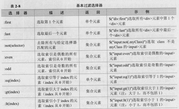 過濾選擇器主要是通過特定的過濾規則來篩選出所需的DOM元素,過濾規則與CSS中的偽類選擇器語法相同,即選擇器都以一個冒號(:)開頭。