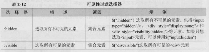 在可見性選擇器中,需要注意的是選擇器:hiddden,它不僅包括樣式屬性display為“none”的元素,也包括文本隱藏域(<input type="hidden"/>)和visibility:hidden之類的元素。