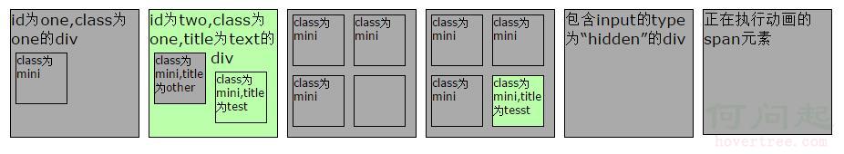 $("div[title=test]").css("background-color","#bbffaa"); //改變屬性title值等於“test”的<div>元素的背景色