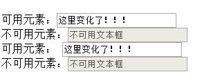 不可用元素:<input name="name" disabled="disabled" value="不可用文本框"/><br/>