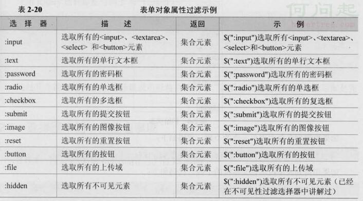 <h3> 表單對象屬性過濾選擇器.</h3>