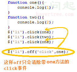 像上面那樣,我們就可以清除方法名為one的click事件。