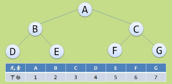 二叉樹的順序存儲結構就是用一維數組存儲二叉樹中的各個結點,並且結點的存儲位置能體現結點之間的邏輯關系。