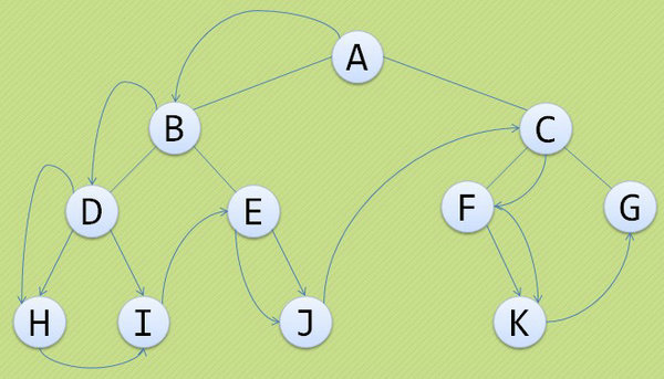 遍歷的順序為:H D I B E J A F K C G