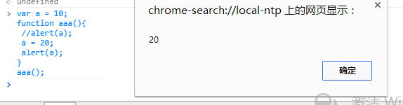 這是因為在alert(a)的時候,bbb函數中的a確實為20 ,可是它對於這時的alert(a)這句話來說是局部的,alert(a)根本找不到bbb函數中的a,所以在aaa函數中它找不到a,於是乎去外面找,一找,就找到了10。
