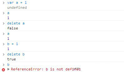 這裡要說明一點,delete 只能刪除屬性,並不能刪除變量。所以我們在定義變量時一定要養成寫 var 的好習慣,任何時候,變量一定要使用 var 關鍵字才能聲明。因為如果不寫 var,變量會被誤認給全局對象創建了一個新屬性。