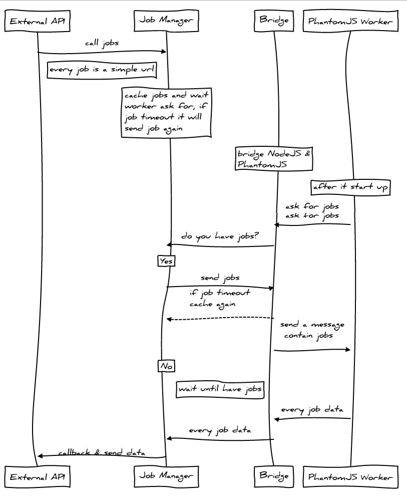 module.exports = { wsPort: 3001, maxJob: 100, maxQueueJob: 400, cache: 'object', maxCache: 10000, workerNum: 0};wsPort {Number} websocket占用的端口地址maxJob {Number} 每個PhantomJS線程可並發worker數maxQueueJob {Number} 最大等待工作數量,0表示不限制,超過該數量,任何工作都直接返回失敗(即status = false)cache {String} 緩存實現,目前只有object實現maxCache {Number} 最大緩存鏈接數workerNum {Number} PhantomJS線程數,0表示和CPU數量相同一個簡單的服務例子